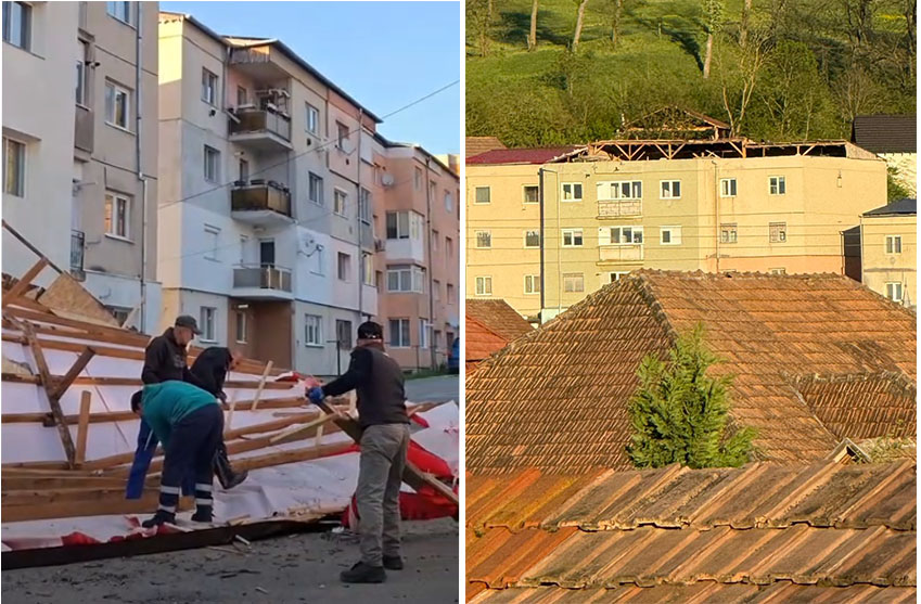Acoperișul unui bloc de pe strada Axente Sever, lângă spital, a fost pur și simplu smuls de vântul puternic. În cădere, resturile au avariat două mașini parcate. Un al treilea autoturism a fost salvat de pompierii locali și cei de la gospodărirea orașului trimiși de autoritățile locale să degajeze zona.