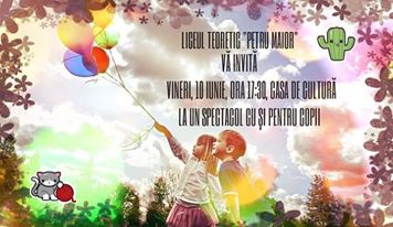 Liceul Teoretic "Petru Maior" Ocna Mureş vă invită vineri, 10 iunie, ora 17.30 la Casa de Cultură "Ion Sîngerean"  la un spectacol cu şi pentru copii.