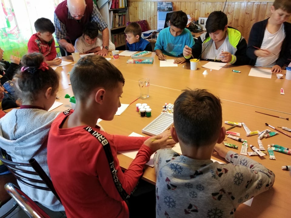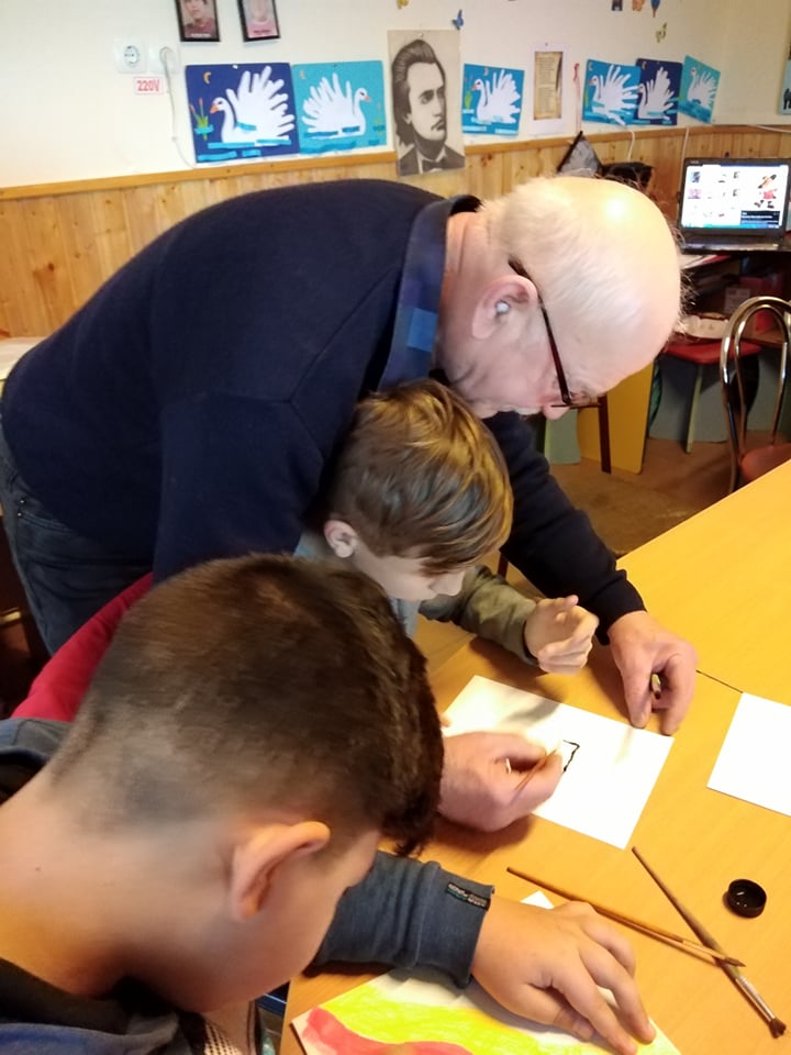 Cu generozitate, seniorul inițiază copiii în diferite tehnici plastice, prin organizare de ateliere; îi ajută să opereze cu elemente de limbaj plastic și să dea lumină și culoare unor imagini creionate de ei, cu diverse materiale de lucru.