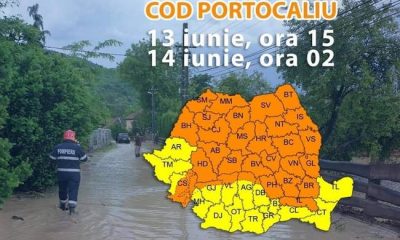 Meteorologii au emis sâmbătă o atenționare Cod Portocaliu de ploi torențiale, vijelii și grindină, valabilă de sâmbătă de la ora 15:00 – până duminică, 14 iunie,...