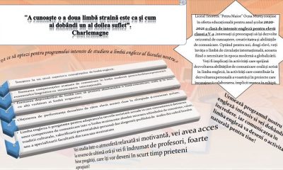 Oferta educațională a Liceului Teoretic „Petru Maior”, după câțiva ani de pauză, cuprinde pentru anul școlar 2020-2021, o clasă intensiv engleză pentru clasa a V-a, unde...