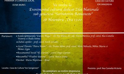 Evenimentul dedicat Zilei Naționale a României, se va desfășura la Casa de Cultură „Ion Sângerean „din Ocna Mureș, în data de 28 noiembrie, de la ora...