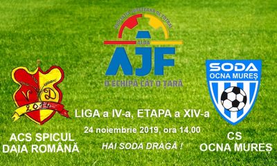Duminică, 24 noiembrie, echipa de fotbal SODA Ocna Mureș se va deplasa la Daia Română unde, de la ora 14.00, va susține un meci greu împotriva...